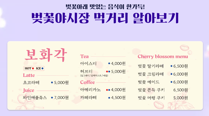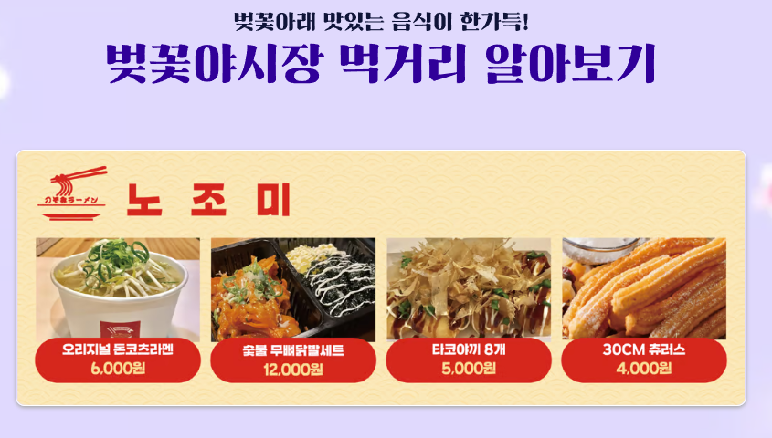 밤이 되면 시작되는 벚꽃 야시장