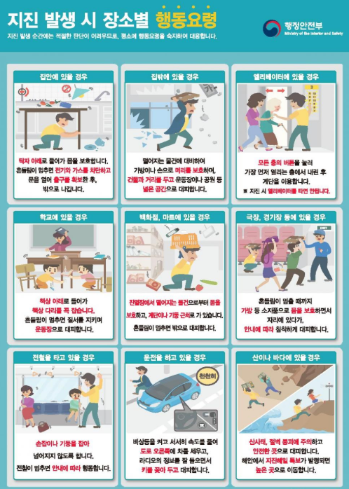 더 이상 우리나라도 이제는 지진에 안전한 나라가 아닙니다. 이번 글에서는 정부 지침과 생존전문가 조언을 토대로 가장 효과적인 지진 대처 방법을 총정리하려 합니다. 아래에 간단하지만 필수적인 요소들을 적어놓았으니 확인 후 참고하시기 바랍니다.